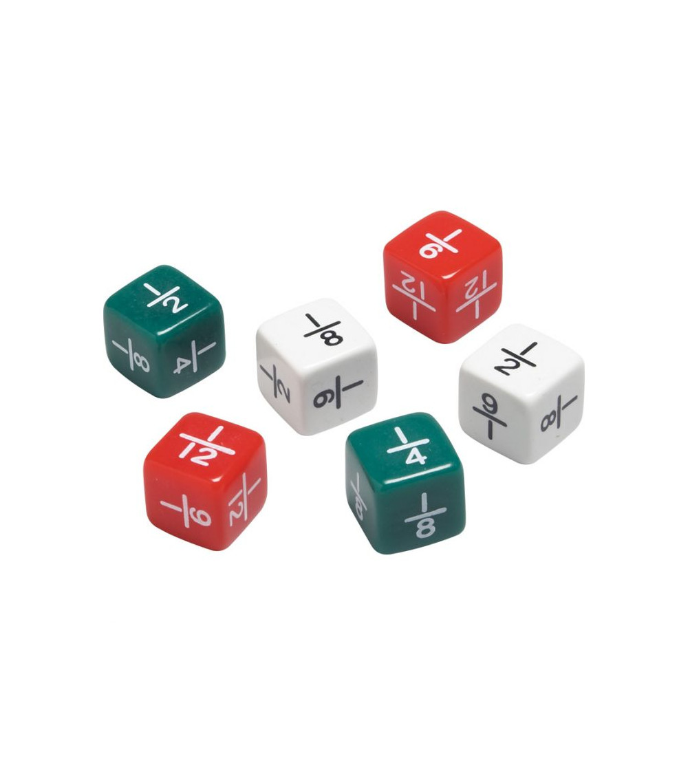 Using these six plastic Fraction Dice, it is possible to create a variety of fraction games and activities!