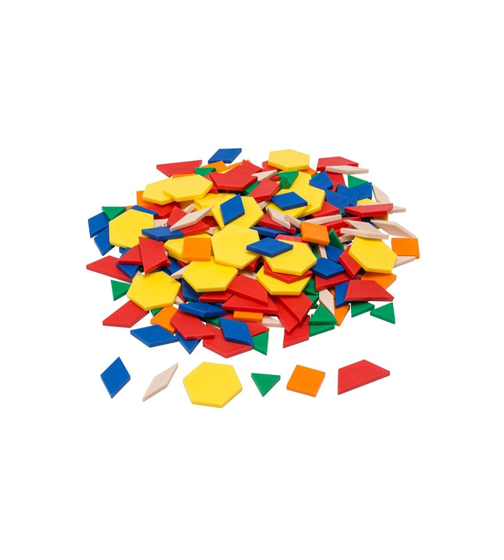 This 250-piece set of .5 cm thick Plastic Pattern Blocks is made up of six shapes and colors.
