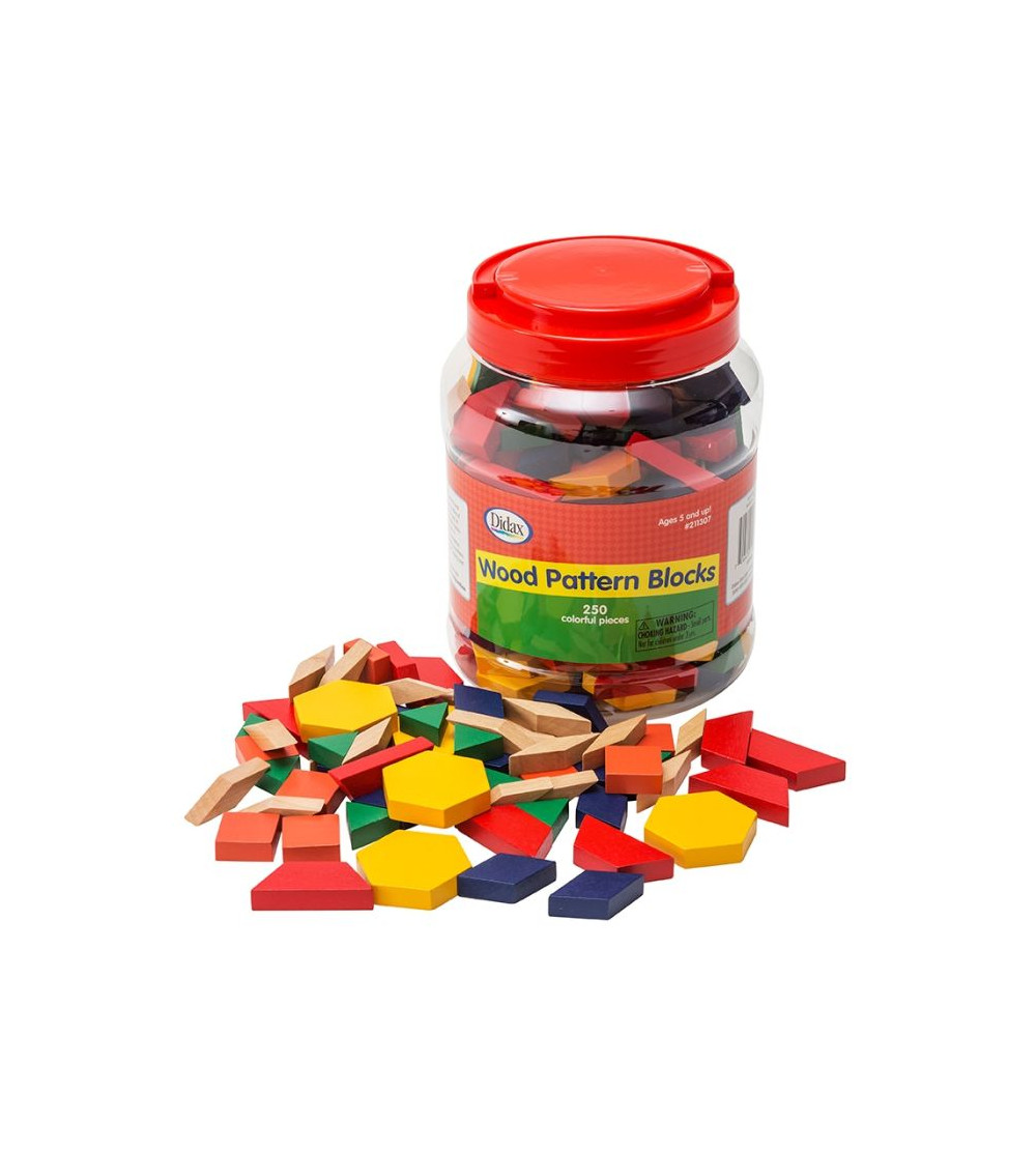 Students create patterns and designs by matching sides of the six geometric shapes of these colorful wooden blocks and explore concepts of one-to-one correspondence, sorting and matching, fractions, symmetry, problem solving, and measurement.