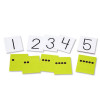 Includes 10 sets of numeral cards. Each set is packaged in a ziplock bag and includes 11 cards with numerals 0 to 10 on one side and the dot pattern for the number on the reverse. Each card measures 2 ½” x 3” on durable cardstock.