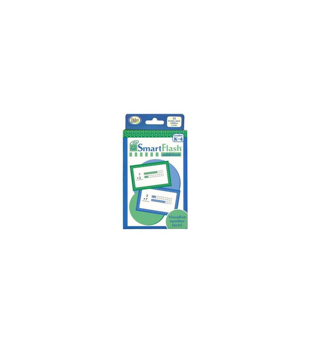 SmartFlash Addition Cards features both the written and visual representation of the number fact, helping to improve student understanding and recall. Set includes 55 double-sided cards (3.5" x 5.5"). Grades K-4.