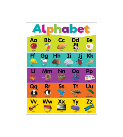 Convenient, useful learning tools that decorate as they educate! The Colorful Alphabet chart measures 17" by 22". Related lessons and activities are provided on the back of every chart.