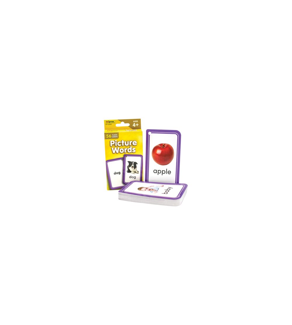 Teach and review picture words individually, in groups, or with the whole class! Each flash card set contains a collection of full-color, high-interest student cards, as well as instructions and tips for the teacher or parent, along with suggested activities. Every card features a word and a corresponding photo. Each one has a hole in the top corner for use with a ring or string to help with organization and storage. Additionally, each card has one corner that is shaped differently than the others. By lining up the non-rounded corners, the flash cards can quickly be faced in the same direction. Each card measures 3⅛" x 5⅛". 56 double-sided cards per pack.