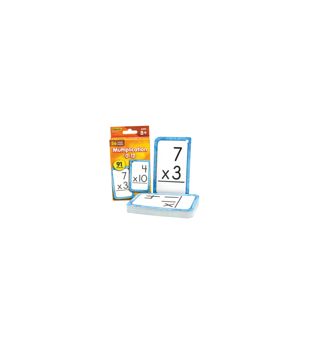 Teach and review multiplication facts individually, in groups, or with the whole class! Each flash card set contains a collection of full-color, high-interest student cards, as well as instructions and tips for the teacher or parent, along with suggested activities. Each card has a hole in the top corner for use with a ring or string to help with organization and storage. Additionally, each card has one corner that is shaped differently than the others. By lining up the non-rounded corners, the flash cards can quickly be faced in the same direction. Each card measures 3⅛" x 5⅛". 56 double-sided cards per pack.