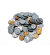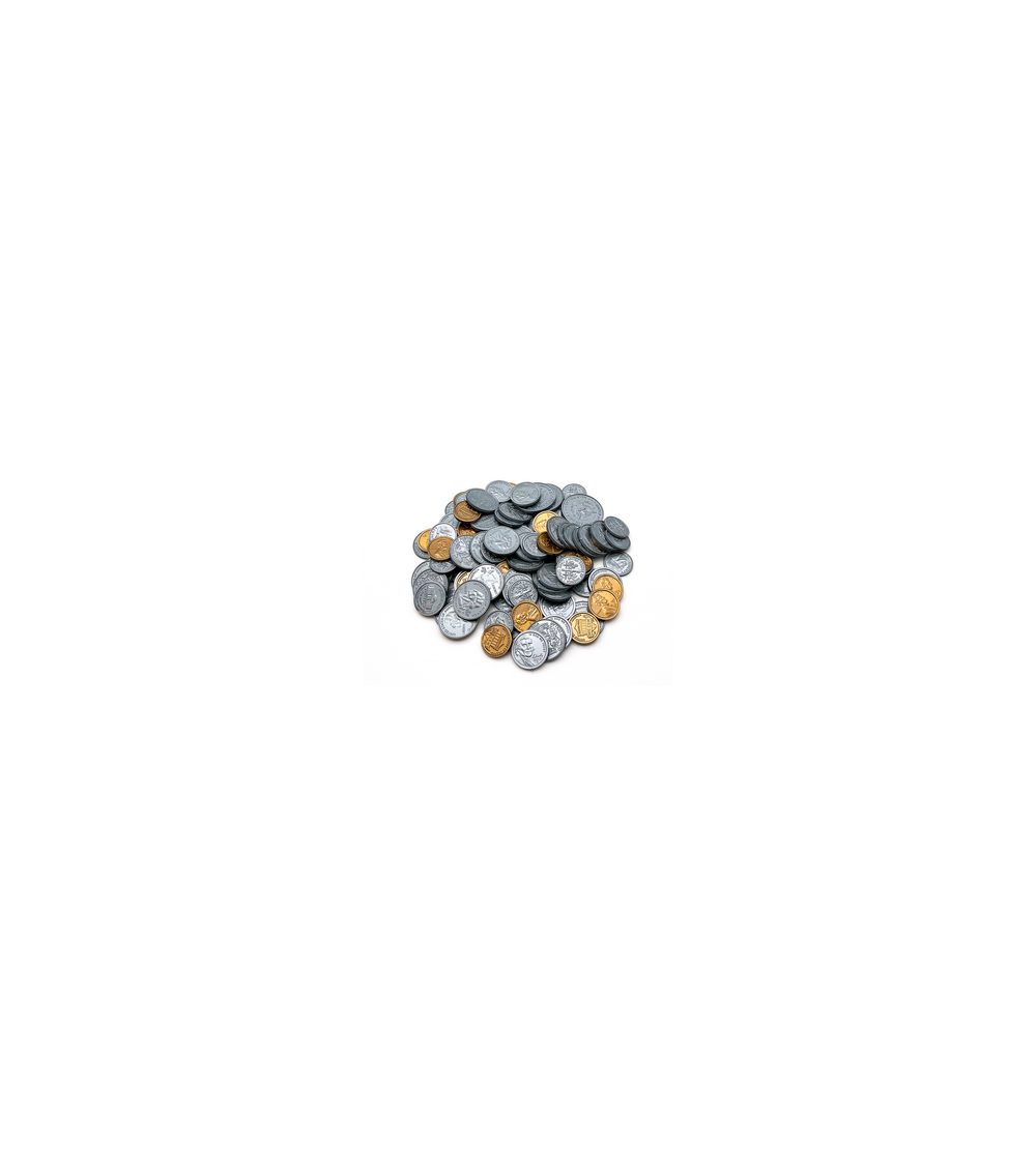 Practice math skills with real-world applications. Includes 110 plastic coins: 30 pennies, 25 nickels, 25 dimes, 25 quarters, and 5 fifty-cent pieces. Pieces range from 3/4" to 1 1/4" in diameter.