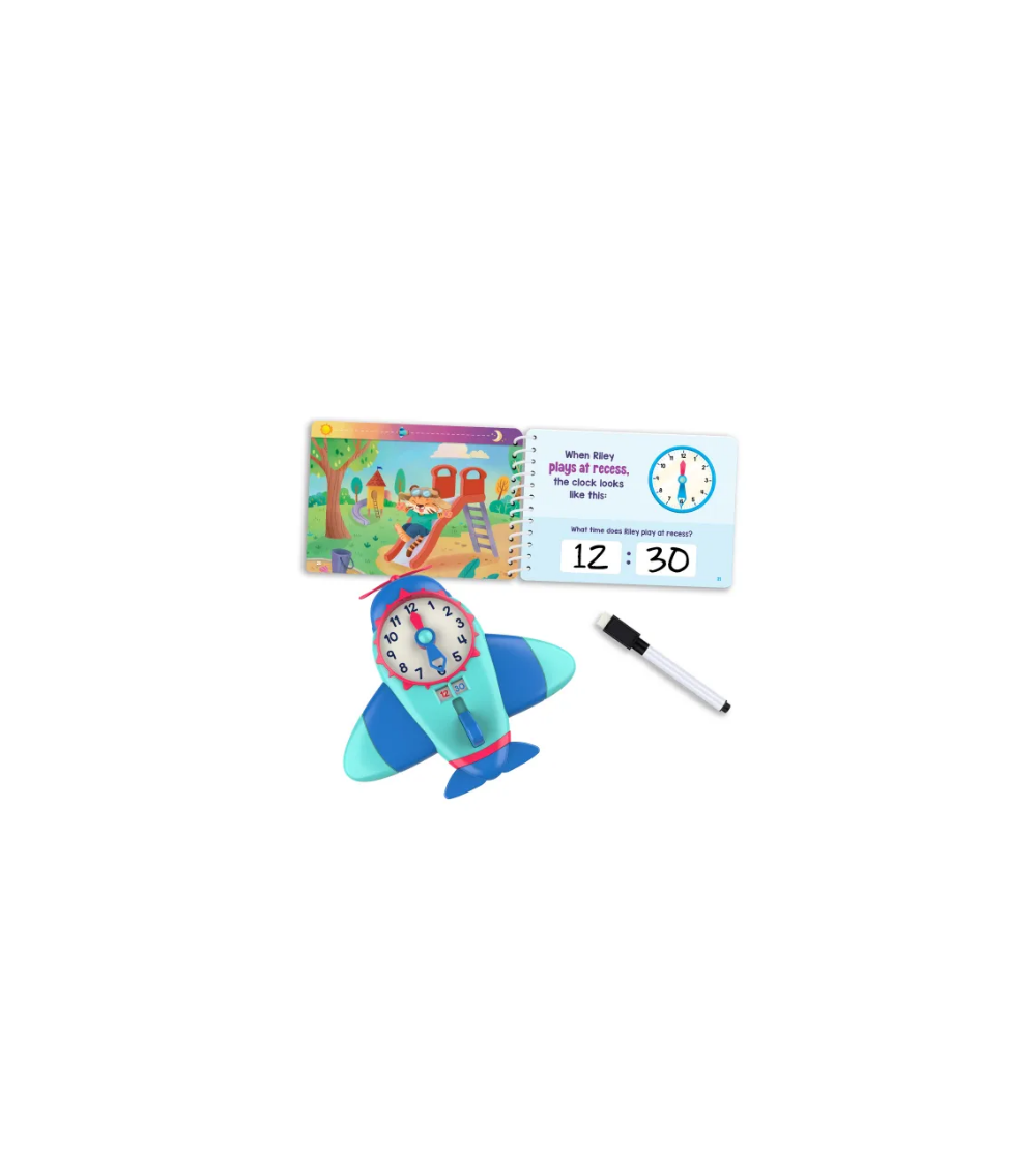 Time to Learn is an interactive activity set that helps kids ages 6+ learn how to tell time. The telling time teaching clock for kids has an interactive analog clock, then kids can check their answer on the digital clock. The illustrated activity book walks kids through Riley the Tiger’s day, from waking up to going to school to getting ready for bed. Kids also improve number recognition and counting skills, plus get used to a familiar daily routine.