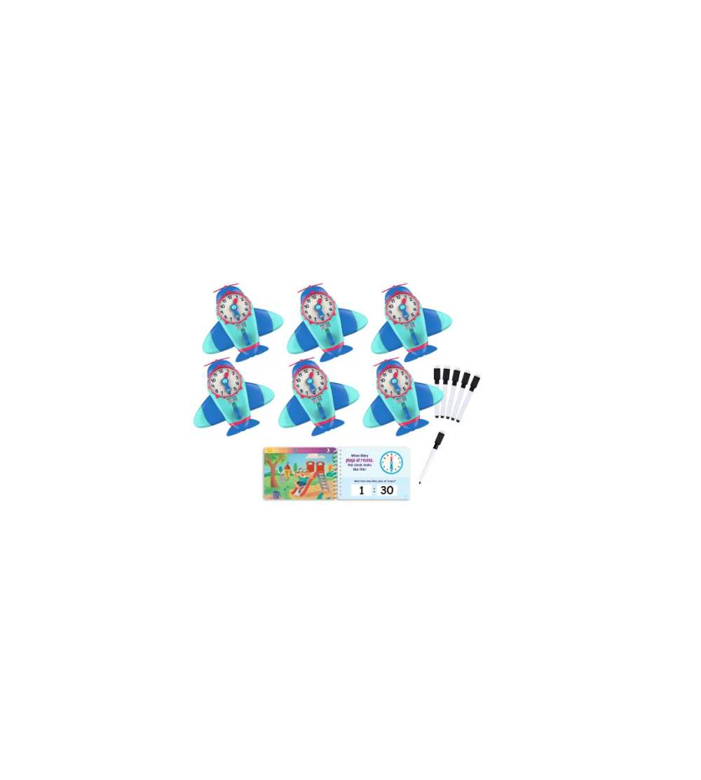 Time to Learn is an interactive activity set that helps students ages 6 and up learn how to tell time. The telling time teaching clock for kids has an interactive analog clock, then students can check their answer on the digital clock. The illustrated activity book walks students through Riley the Tiger’s day, from waking up to going to school to getting ready for bed. Students also improve number recognition and counting skills, plus get used to a familiar daily routine. With six complete sets, this is the perfect telling time activity for the classroom and small groups.