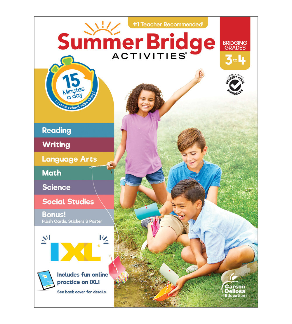 Build a bridge of learning opportunities—from school to home and back again with the Summer Bridge Activities® 3rd Grade to 4th Grade Workbook! The 160-page summer learning workbook features daily activities engage soon-to-be 4th graders in quick, 15-minute active learning adventures covering everything from language arts, math, and science to character development, fitness, and outdoor learning to keep your child active both mentally and physically.