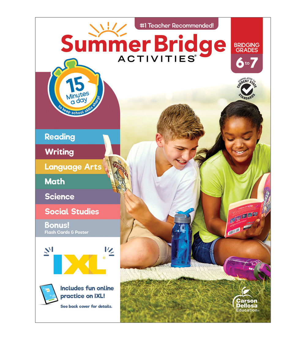 Build a bridge of learning opportunities—from school to home and back again with the Summer Bridge Activities® 6th Grade to 7th Grade Workbooks All Subjects! The 160-page summer learning middle school book features daily activities engage soon-to-be 7th graders in quick, 15-minute active learning adventures covering everything from language arts, math, and science to character development, fitness, and outdoor learning to keep your child active both mentally and physically.