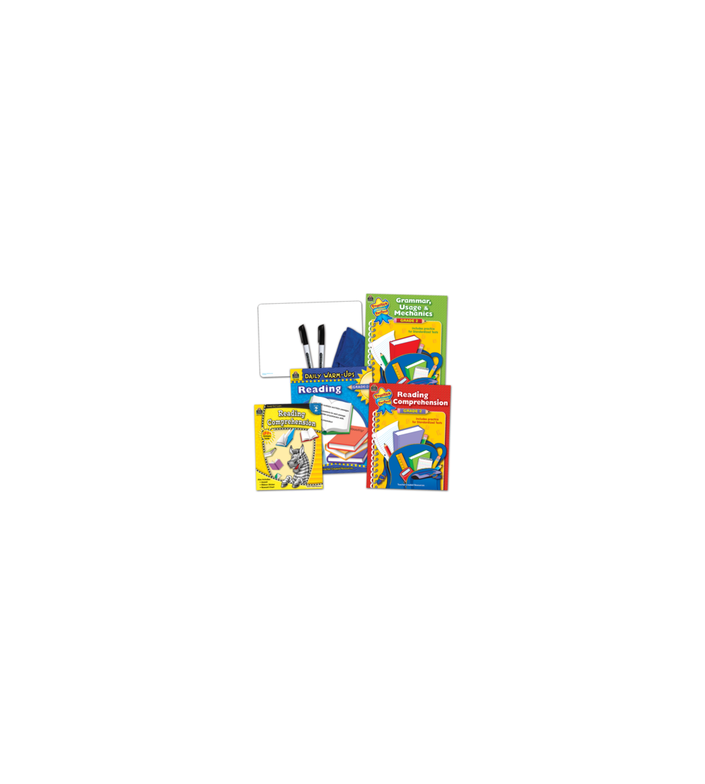 Set Includes: • Ready-Set-Learn: Reading Comprehension Grade 2 • Practice Makes Perfect: Reading Comprehension Grade 2 • Practice Makes Perfect: Grammar, Usage & Mechanics Grade 2 • Daily Warm-Ups: Reading, Grade 2 • Double-Sided Writing Dry Erase Boards • Two Dry Erase Pens & Microfiber Towels
