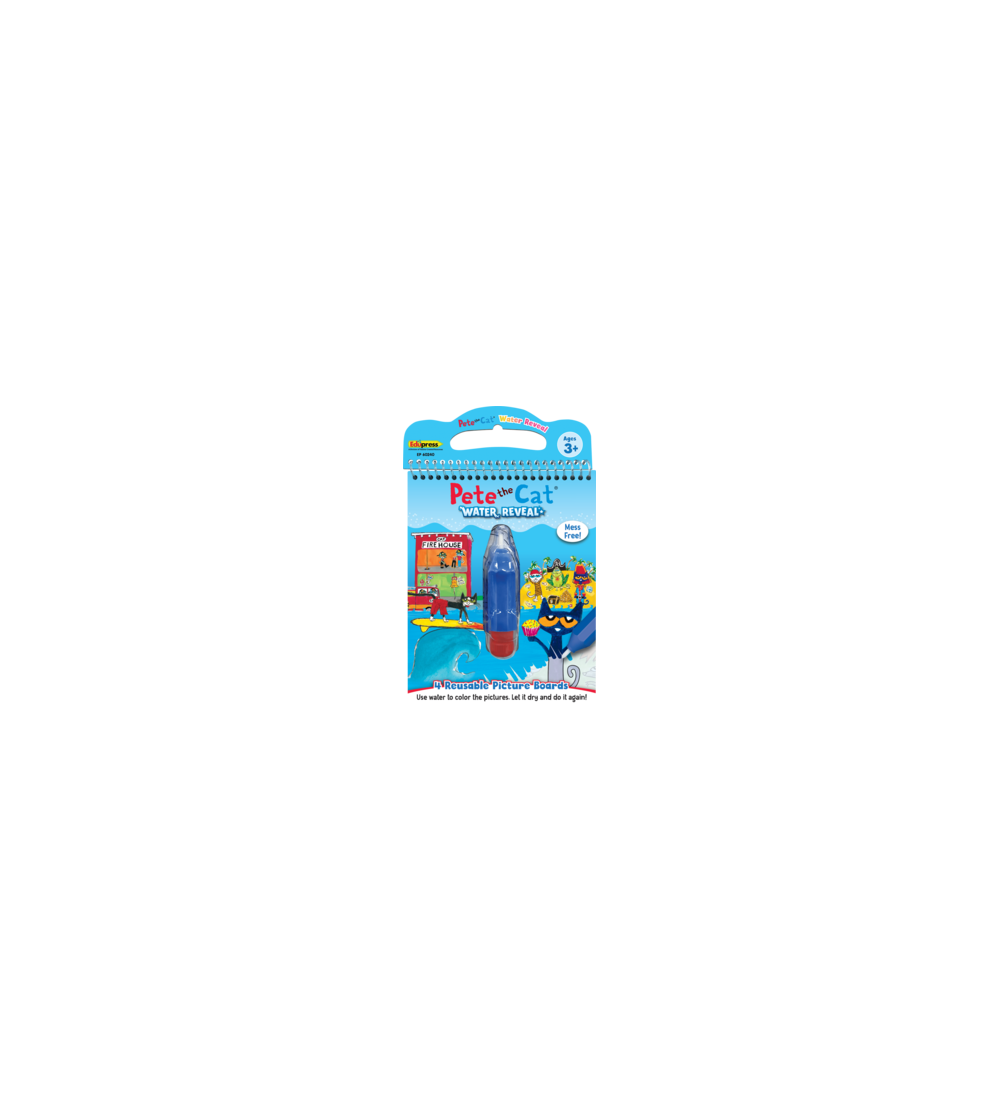 Take your children on a groovy adventure! With this water reveal book, students will rock out with Pete and his friends. Mess free! Use water to color the pictures. Let it dry and do it again! Includes search and find activities plus an educational fact. Comes with 4 reusable picture boards and 1 refillable water pen.