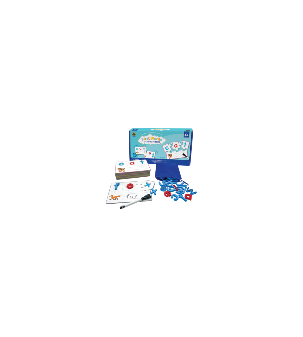 Help children learn letters and sounds with these engaging learning puzzles. Set includes 20 four-piece puzzles featuring bright, colorful images and a color border to guide assembly. Kids trace each letter, practice its sound, and find matching magnetic letters to fit into recessed areas. Children can expand their learning by using the magnetic pieces on any magnetically receptive surface. Set also includes include a write-on/wipe-off area for repeated practice, magnetic letters, a dry-erase pen, and a fabric storage bag. Ages 4+.