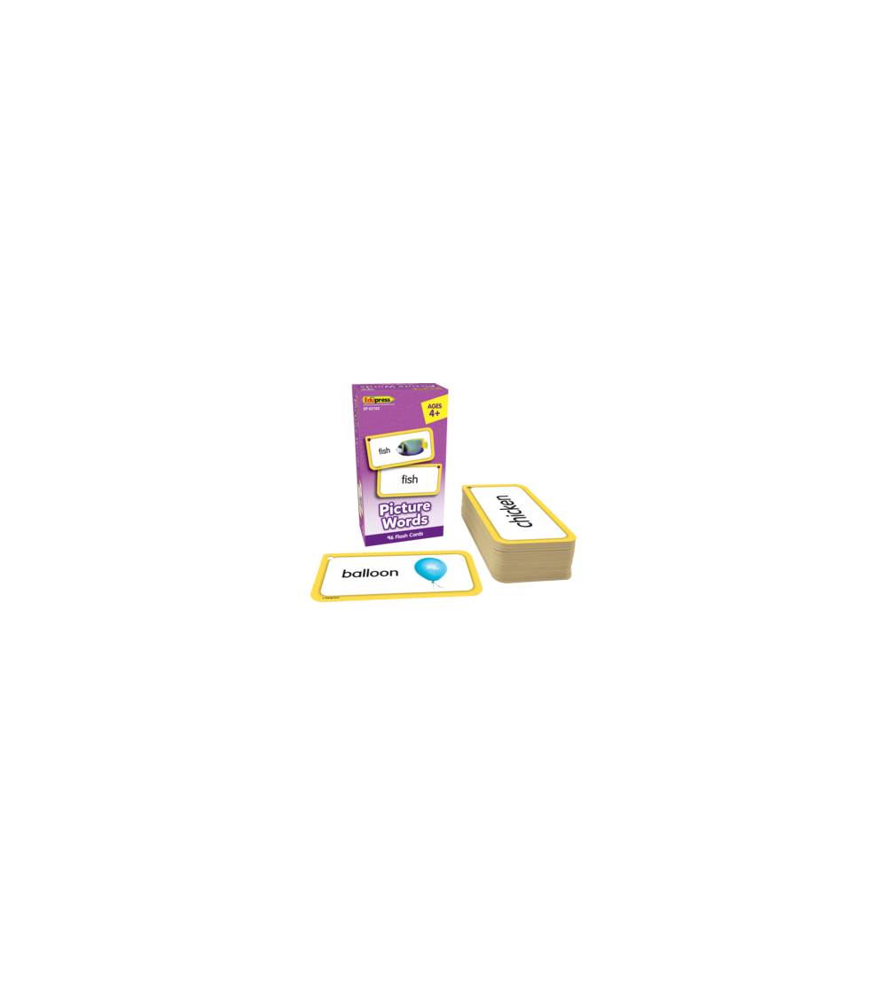 Help learners master spelling common picture words with these flash cards. Cards with photo support help children familiarize themselves with each word. Once they're comfortable, challenge them to read each word without the pictures. Use in ELA small group centers, as a class, or for independent practice. Pre-punched holes can be fit with a ring or string for easy organization and storage. Pack includes 96 double-sided flash cards. Each card measures about 3" x 5-3/4".
