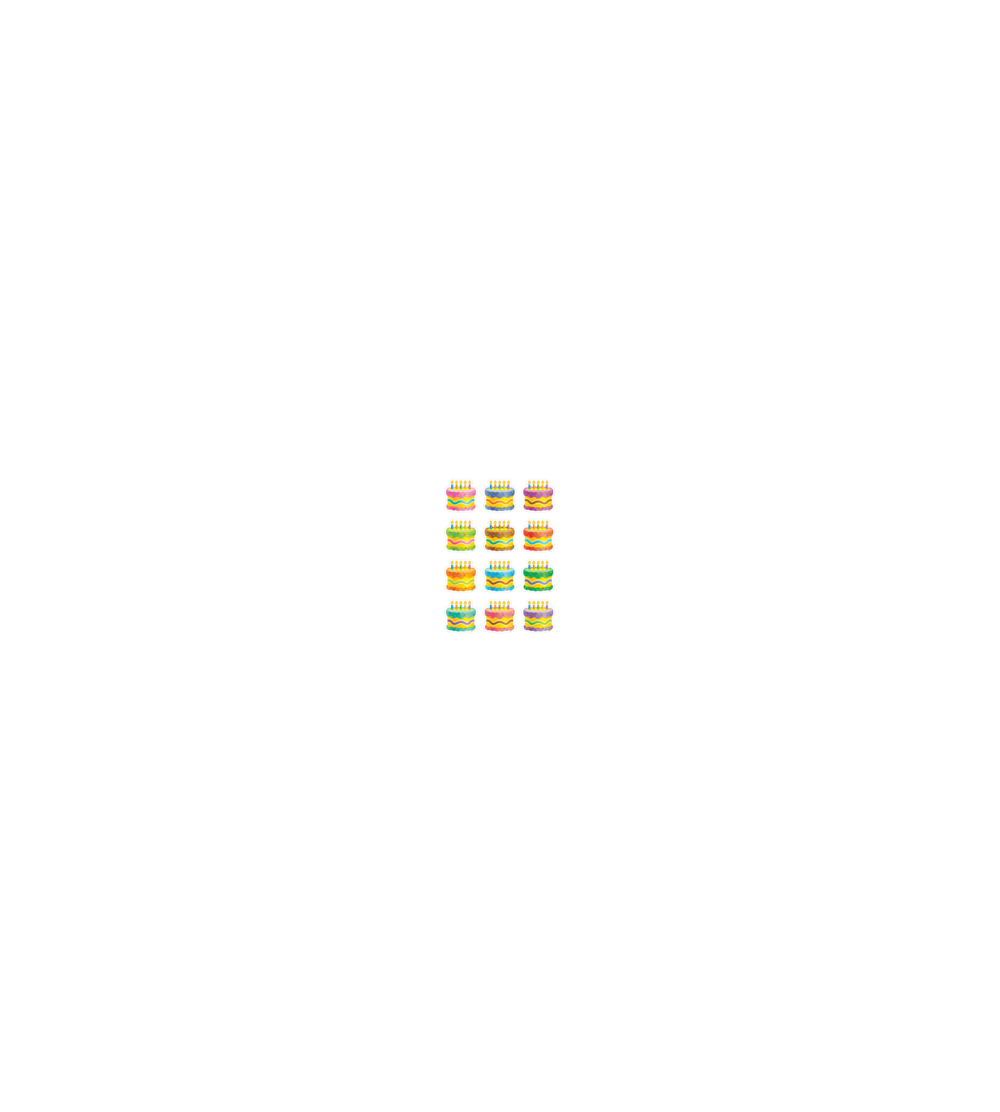 Cheer on every student’s special day with these birthday cake accents! Featuring bright colors, sprinkles, and squiggles, these cakes bring a pop of joy to walls, doors, and birthday bulletin boards. Create customized tokens or class prizes. Pair these with colorful backdrops, border trim, and accents to create bulletin boards that make students feel seen and celebrated. Every pack includes 36 pieces. Each little cutout measures about 2-5/8" x 2-5/8".