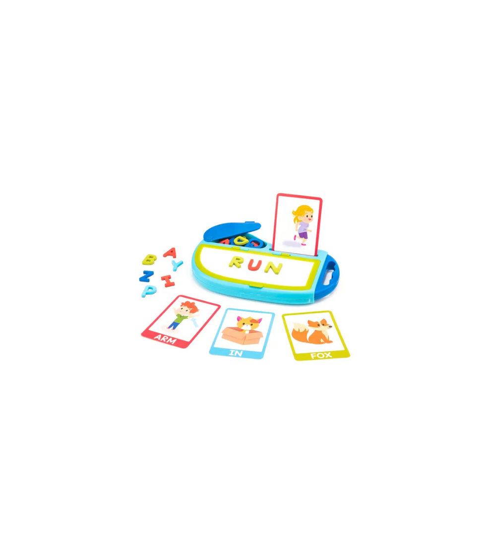 The AlphaMagnets GO! Spelling Set packs up all sorts of hands-on letter learning activities into one convenient learning tool for the home or classroom! Use the illustrated flash cards and uppercase magnetic letters to spell CVC sight words, practice letter recognition for preschoolers, and cement letter shapes, sounds, and formation. The whiteboard surface can also be used to practice writing! In addition to literacy skills, playing with the foam letter magnets builds fine motor skills and hand-eye coordination. Set strong preschool foundations and build kindergarten readiness with this all-in-one, portable magnetic alphabet board made for on-the-go practice!