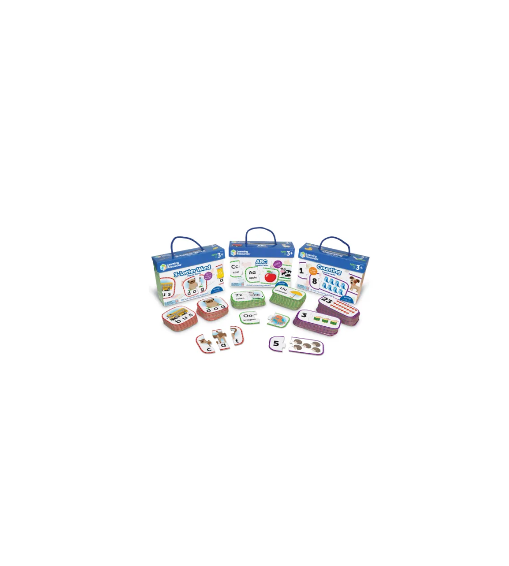 Build new kindergarten readiness skills, one piece at a time! Get your little ones learning and playing at the same time with the Puzzle Cards PreK Bundle. This bundle includes three of our popular Puzzle Cards sets: ABC Puzzle Cards, Counting Puzzle Cards, and 3-Letter Word Puzzle Cards. That's 71 puzzles in all! Each puzzle features friendly full-color illustrations that spark kids' imaginations as they pick up new counting, spelling, and letter skills. Designed with little ones in mind, each puzzle is self-correcting, which makes it easier for kids to puzzle out the one right answer. Each Puzzle Cards PreK Bundle comes with sturdy reusable boxes that double as a storage container when playtime is done.