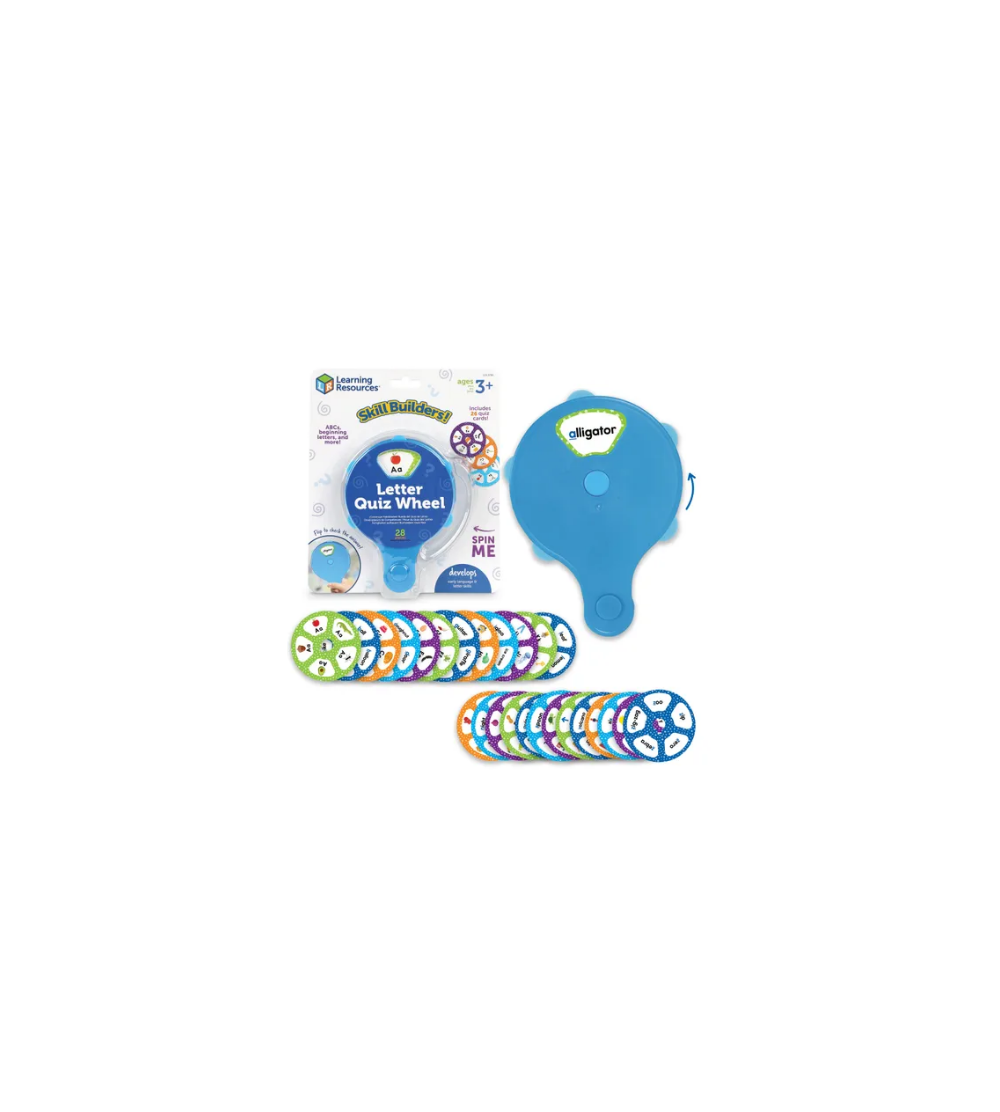 Take new letter skills for a spin with this handheld learning wheel! Kids can pop in a card, spin to a letter and picture, then flip to check the answer. This set includes 26 cards—with one for every letter of the alphabet, it’s an all-in-one way to learn the ABCs. Cards store on the back of the wheel for easy clean-up and on-the-go learning. Age 3+ | Grade PreK+