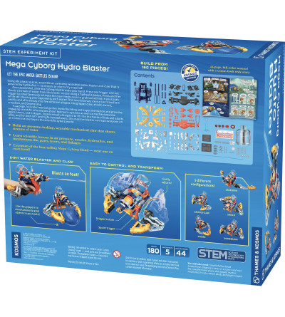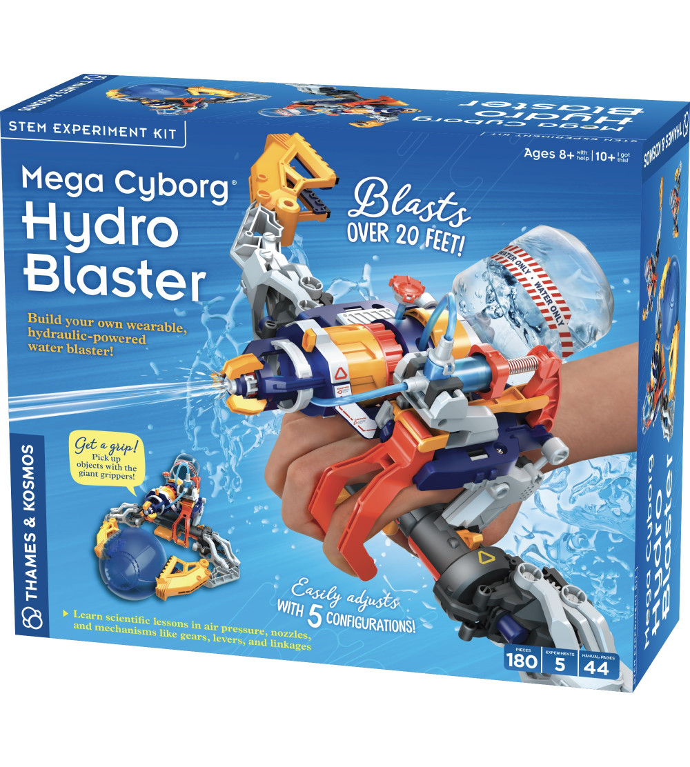 Explore hydraulics, mechanics, and robotics with a buildable, handheld water blaster and claw! Using over 180 plastic pieces, assemble this awesome device which shoots a stream of water and grabs onto targets with its huge gripper — no motors or electricity required!