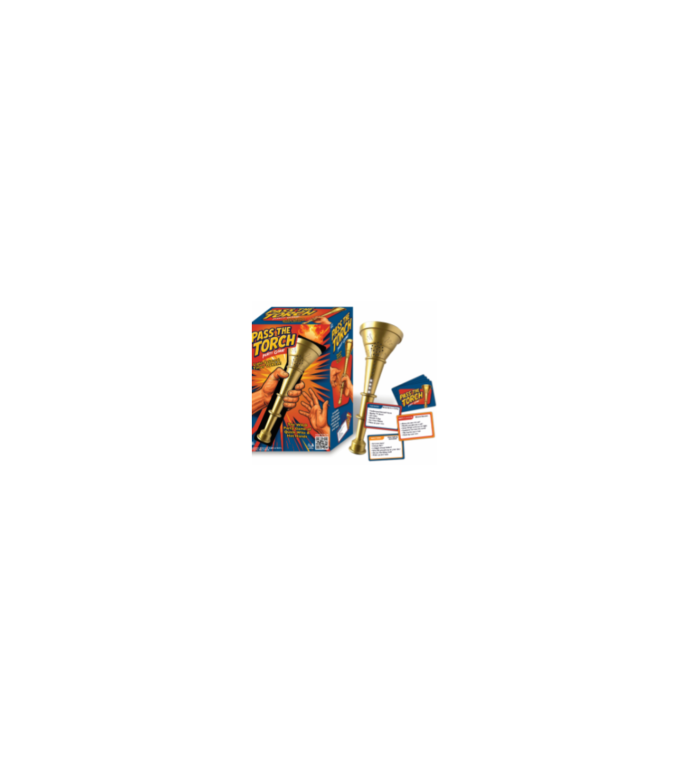 Pass the torch and don't get burned. This game includes a light up torch that goes off in 10 seconds if you don't press the "pass the torch" button. In this game, you play a challenge card that will have you keep a rhyme going, keep a category going or keep an endless string of questions going. When someone passes you the torch, you have 10 seconds to respond. Press the torch button to reset the time and pass it to the next player. First person to freeze up draws more cards. Play all of your cards first to win.